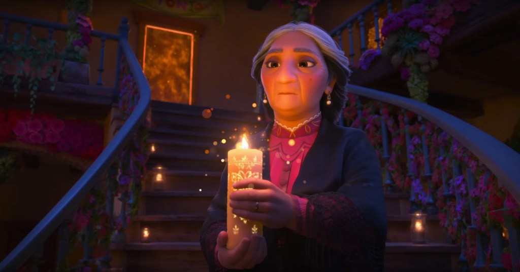 Over the years, Disney has created some pretty memorable animated grandmas and grandma-like figures — Mulan’s grandma, Moana’s grandma, that old woman from The Fox and the Hound (1981). Abuela Alma is no exception, but she seems cut from a different cloth. Taking cues from Colombia’s wealth of literature, Encanto is grounded in realism but employs magical elements to further explore this reality.