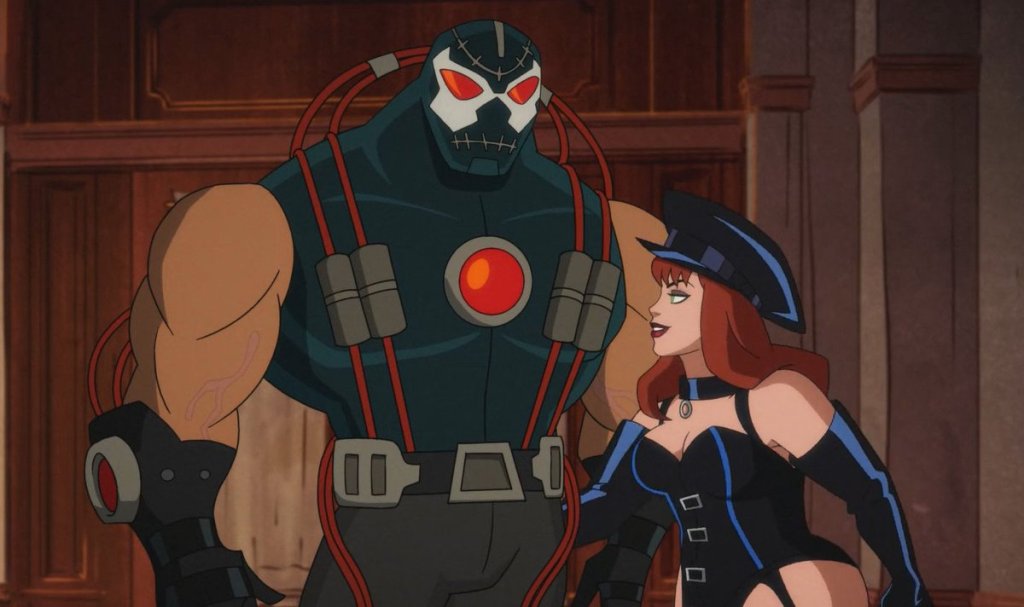Elsewhere, Clayface (voice of Alan Tudyk) prepares for a date with someone who’s most likely a catfish, and very undeserving of Clayface’s tickets to Brett Goldstein’s one-man show — the Ted Lasso actor plans to polish his Emmy and read poetry, shirtless. Meanwhile, Bane (voice of James Adomian) is too afraid to swipe right on any potential date’s profiles. He’s lacking confidence, but doesn’t want to be alone on Valentine’s Day. Without giving anything away, Bane’s signature black spandex costume and mask get him mistaken for someone else, which leads him to make a surprising connection with a stranger.